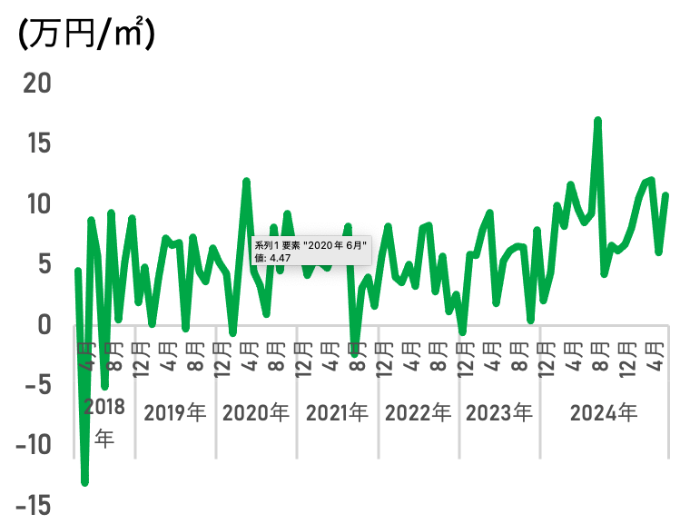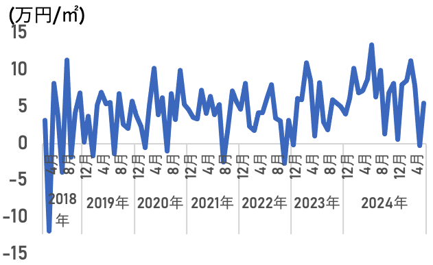 <成約価格と在庫価格の差(㎡単価)>