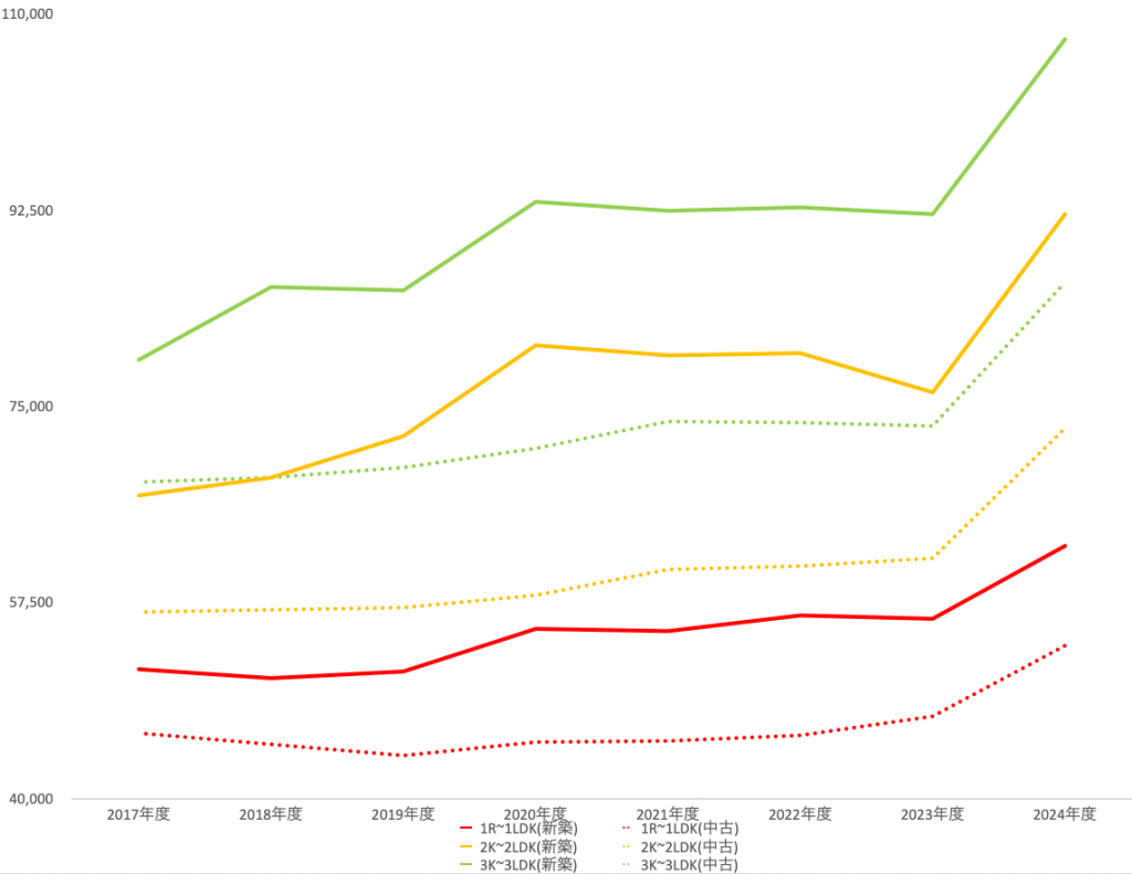タイプ別平均賃料の推移